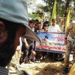 شهید رو کنار مزار برده بودند و عده زیادی دورش جمع بودند.